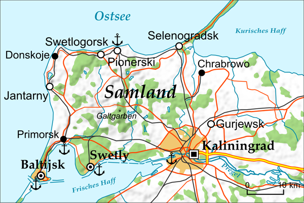 Отметим, что наше путешествие проследует вдоль западного побережья, куда море, от посёлка Окунёво до посёлка Синявино, во время янтарных бурь выбрасывает особенно много солнечного камня. Безусловно задержимся в Янтарном – остановимся в имении Пальмникен и поселении Кракстепеллен, теперь это один посёлок, центр небольшого округа, где находится главный центр добычи янтаря, не только в Европе, но и во всем мире, как когда-то служил Земландский берег Восточной Пруссии, а теперь – Калининградский полуостров в России.